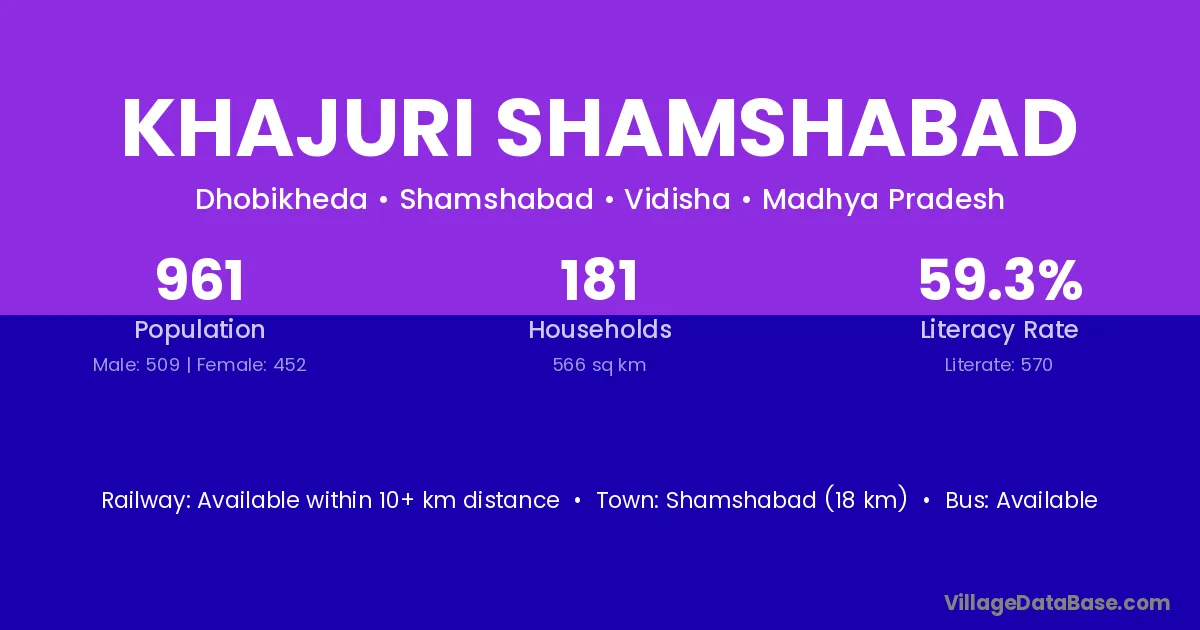 Khajuri Shamshabad village has a total population of 961 people, of which 509 are males and 452 are females.