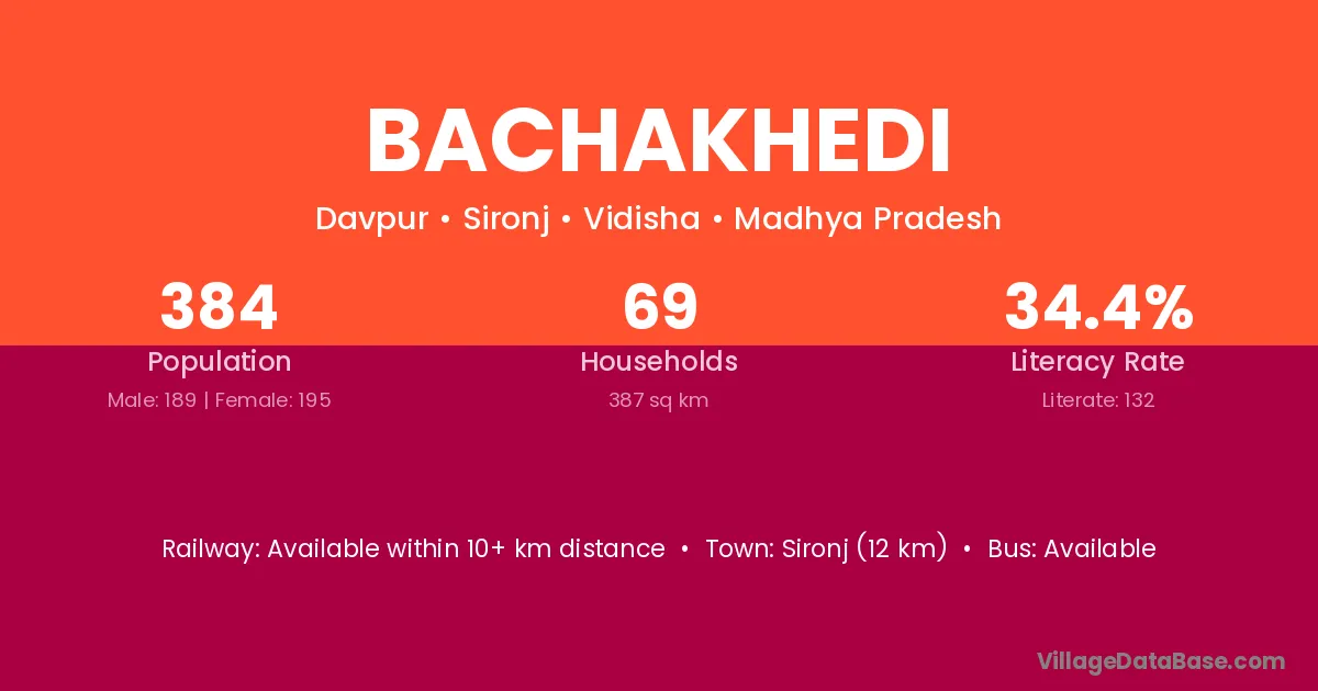 Sironj (12 km) is the nearest town to Bachakhedi village for major economic activities and is located approximately 12 km away.
