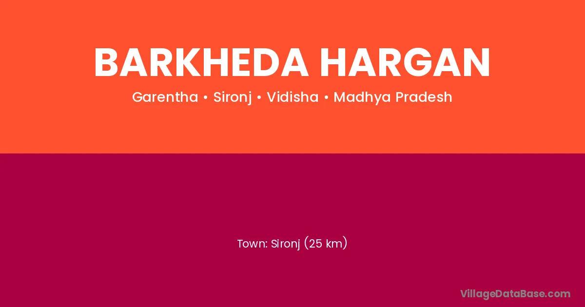 Sironj (25 km) is the nearest town to Barkheda Hargan village for major economic activities and is located approximately 25 km away.