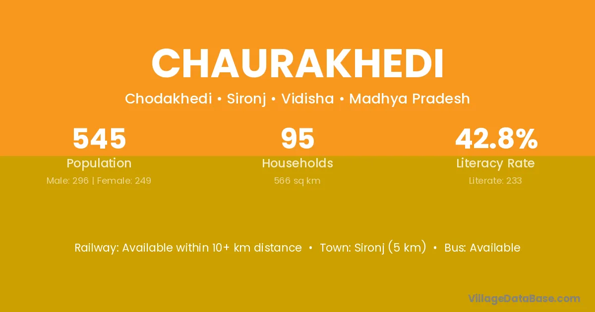 Sironj (5 km) is the nearest town to Chaurakhedi village for major economic activities and is located approximately 5 km away.