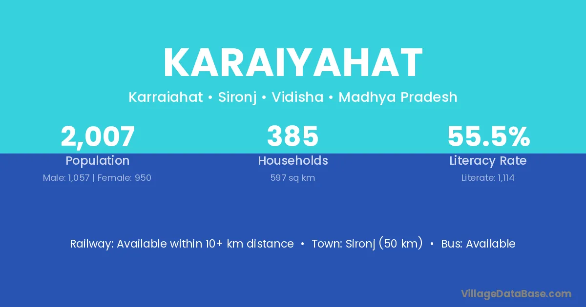 Sironj (50 km) is the nearest town to Karaiyahat village for major economic activities and is located approximately 50 km away.