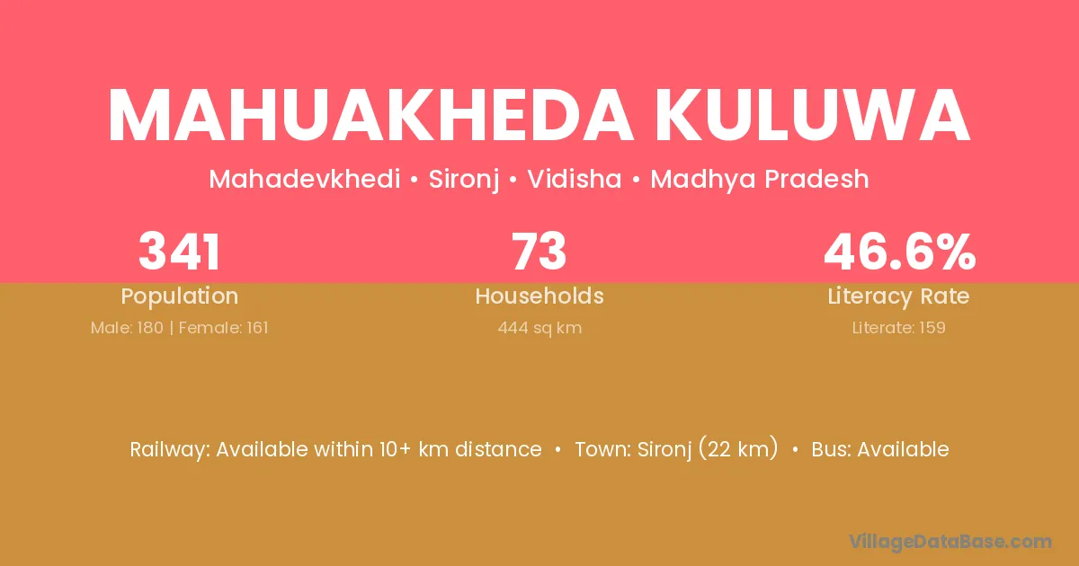 Mahuakheda Kuluwa village has a total population of 341 people, of which 180 are males and 161 are females.