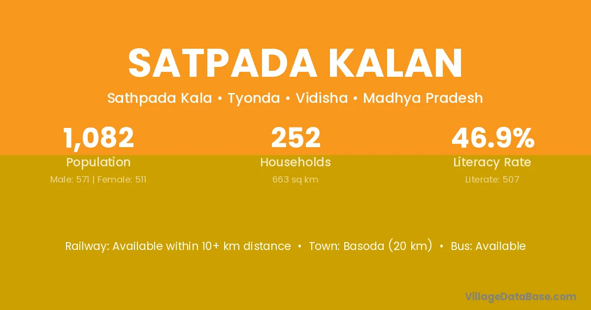 Basoda (20 km) is the nearest town to Satpada Kalan village for major economic activities and is located approximately 20 km away.
