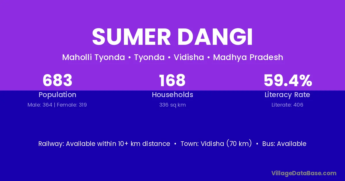Vidisha (70 km) is the nearest town to Sumer Dangi village for major economic activities and is located approximately 70 km away.