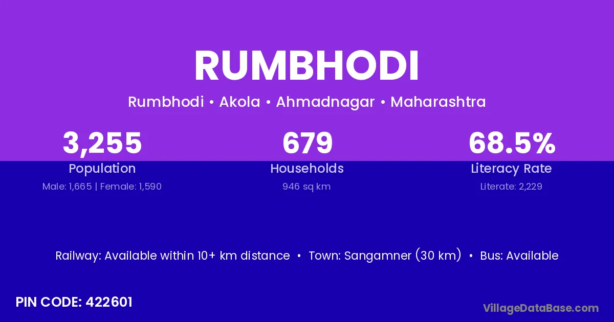 Sangamner (30 km) is the nearest town to Rumbhodi village for major economic activities and is located approximately 30 km away.