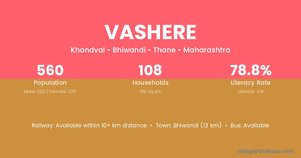 Sangamner (23 km) is the nearest town to Vashere village for major economic activities and is located approximately 23 km away.