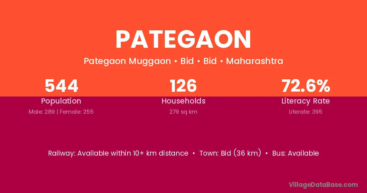 Ahmadnagar (67 km) is the nearest town to Pategaon village for major economic activities and is located approximately 67 km away.