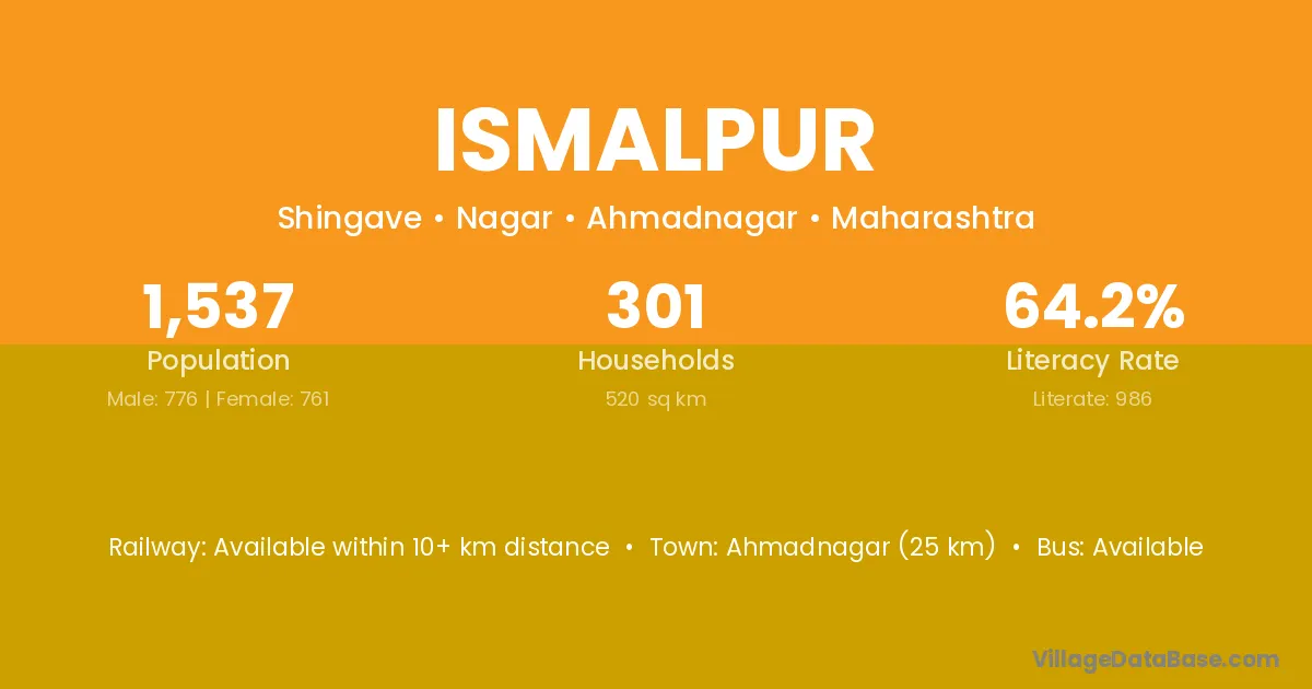 Ahmadnagar (25 km) is the nearest town to Ismalpur village for major economic activities and is located approximately 25 km away.