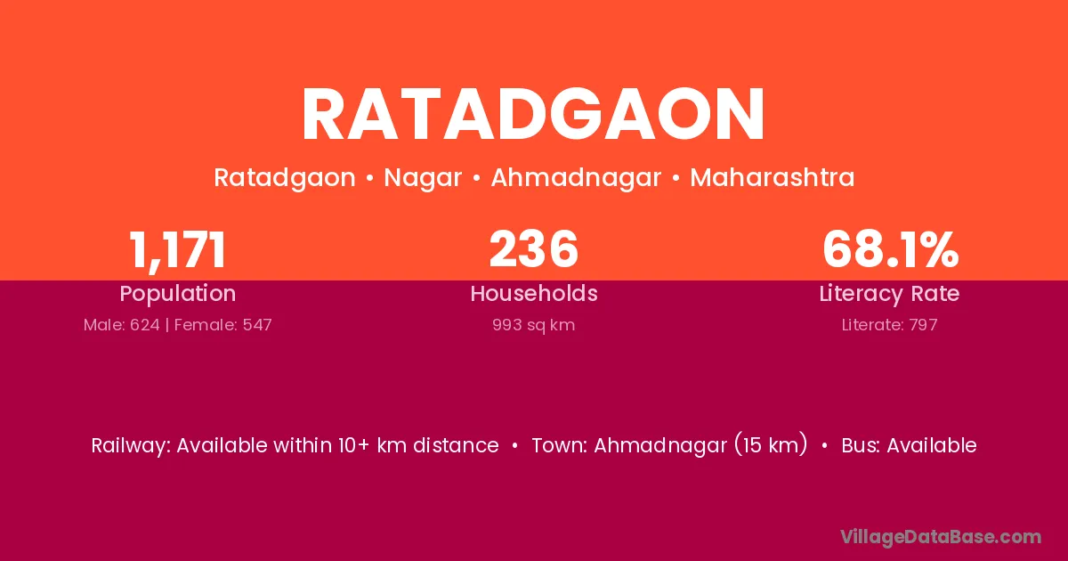 Ahmadnagar (15 km) is the nearest town to Ratadgaon village for major economic activities and is located approximately 15 km away.