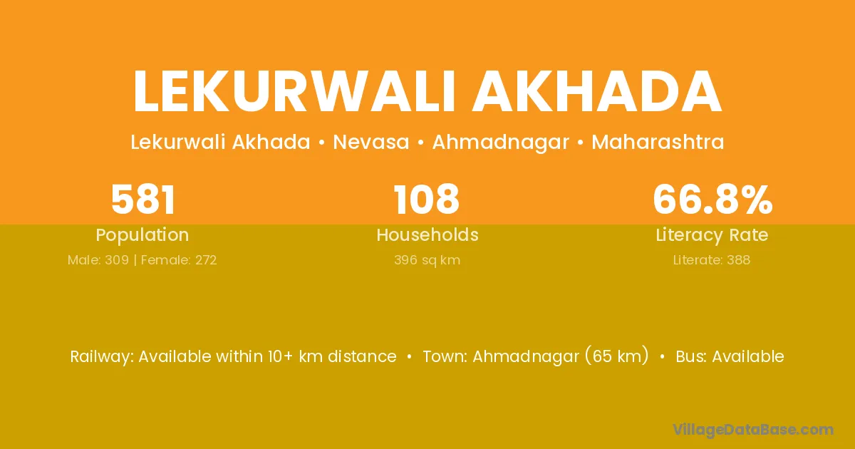 Ahmadnagar (65 km) is the nearest town to Lekurwali Akhada village for major economic activities and is located approximately 65 km away.