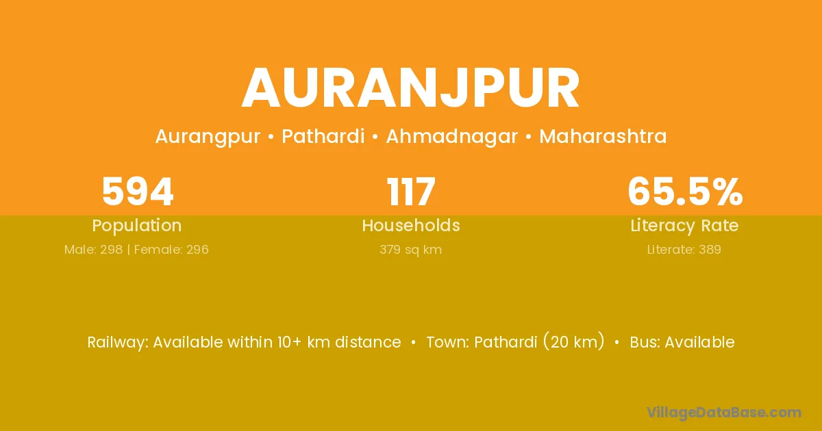 Pathardi (20 km) is the nearest town to Auranjpur village for major economic activities and is located approximately 20 km away.