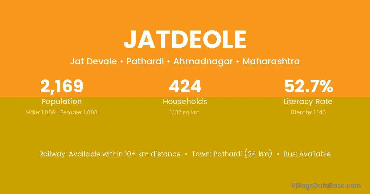 Pathardi (24 km) is the nearest town to Jatdeole village for major economic activities and is located approximately 24 km away.
