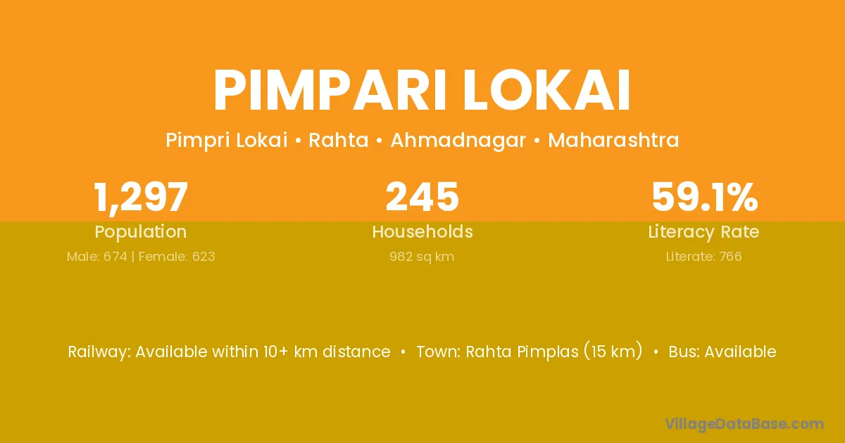 Pimpari Lokai village has a total population of 1,297 people, of which 674 are males and 623 are females.