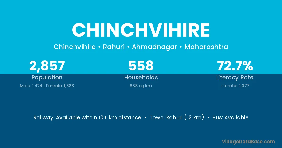 Rahuri (12 km) is the nearest town to Chinchvihire village for major economic activities and is located approximately 12 km away.