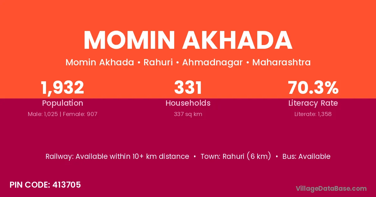 Rahuri (6 km) is the nearest town to Momin Akhada village for major economic activities and is located approximately 6 km away.