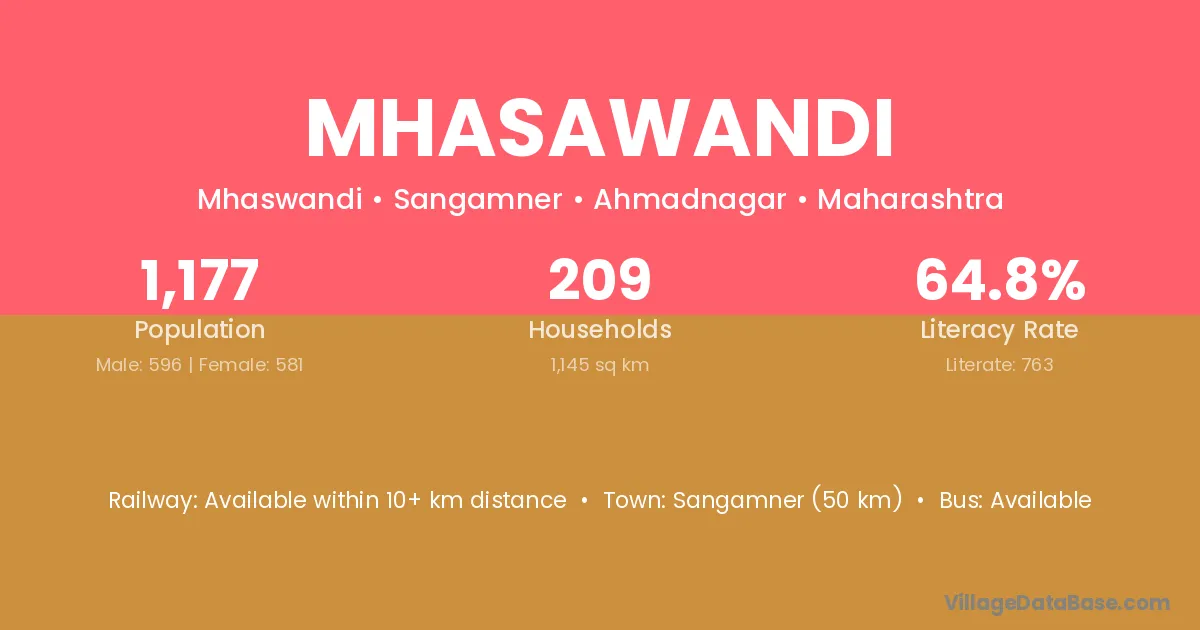 Mhasawandi village has a total population of 1,177 people, of which 596 are males and 581 are females.
