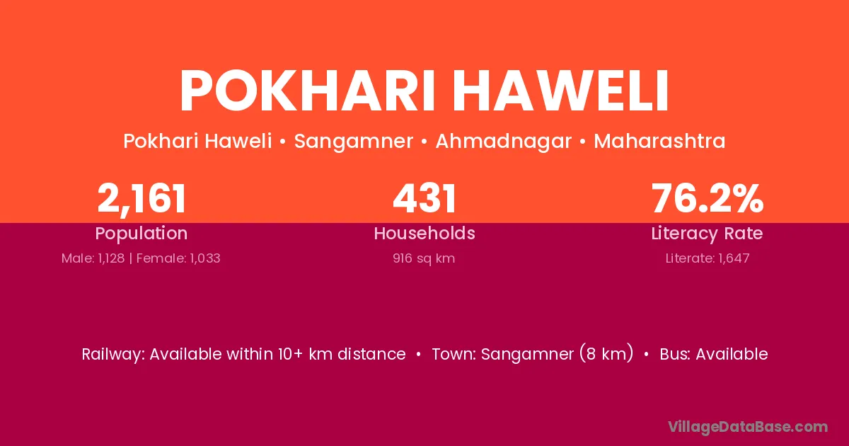 Sangamner (8 km) is the nearest town to Pokhari Haweli village for major economic activities and is located approximately 8 km away.