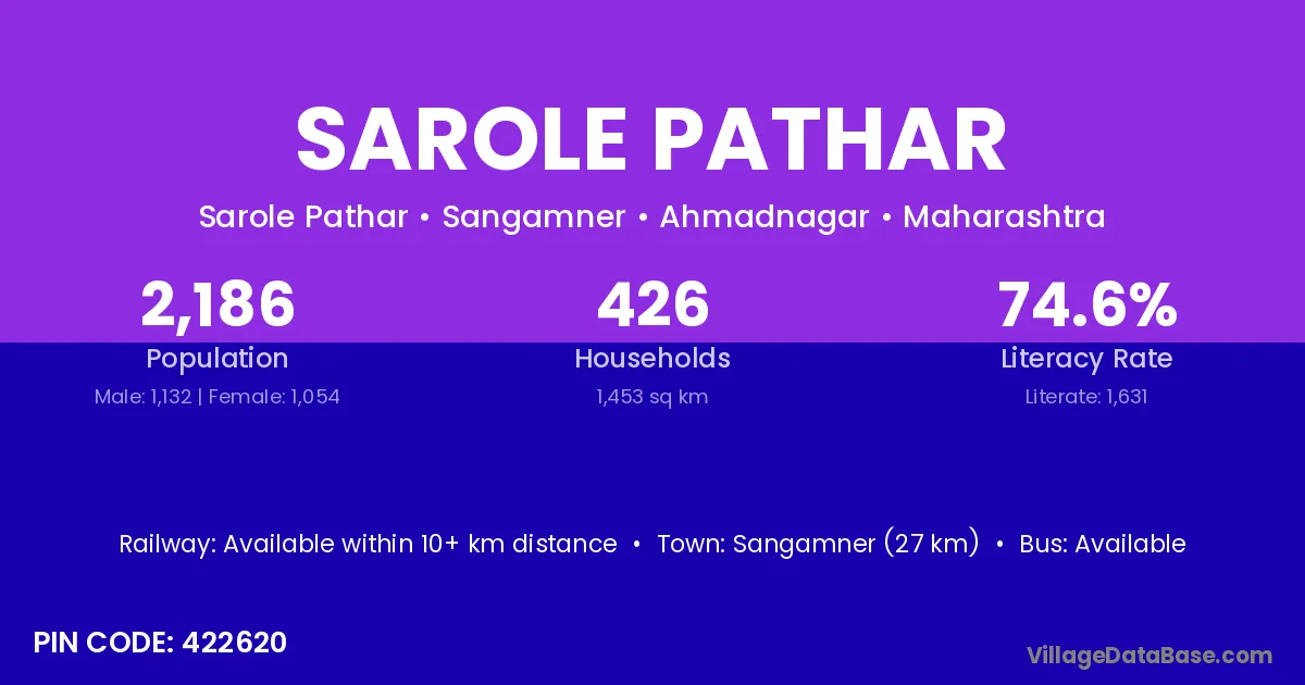 Sangamner (27 km) is the nearest town to Sarole Pathar village for major economic activities and is located approximately 27 km away.