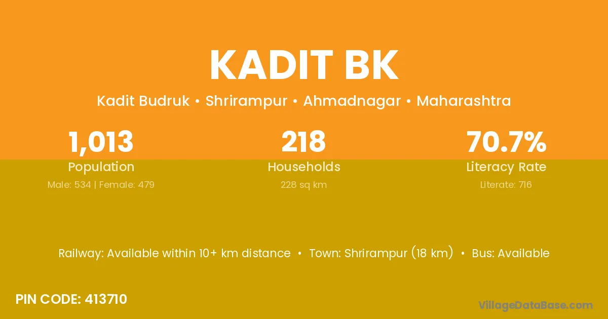 Shrirampur (18 km) is the nearest town to Kadit Bk village for major economic activities and is located approximately 18 km away.