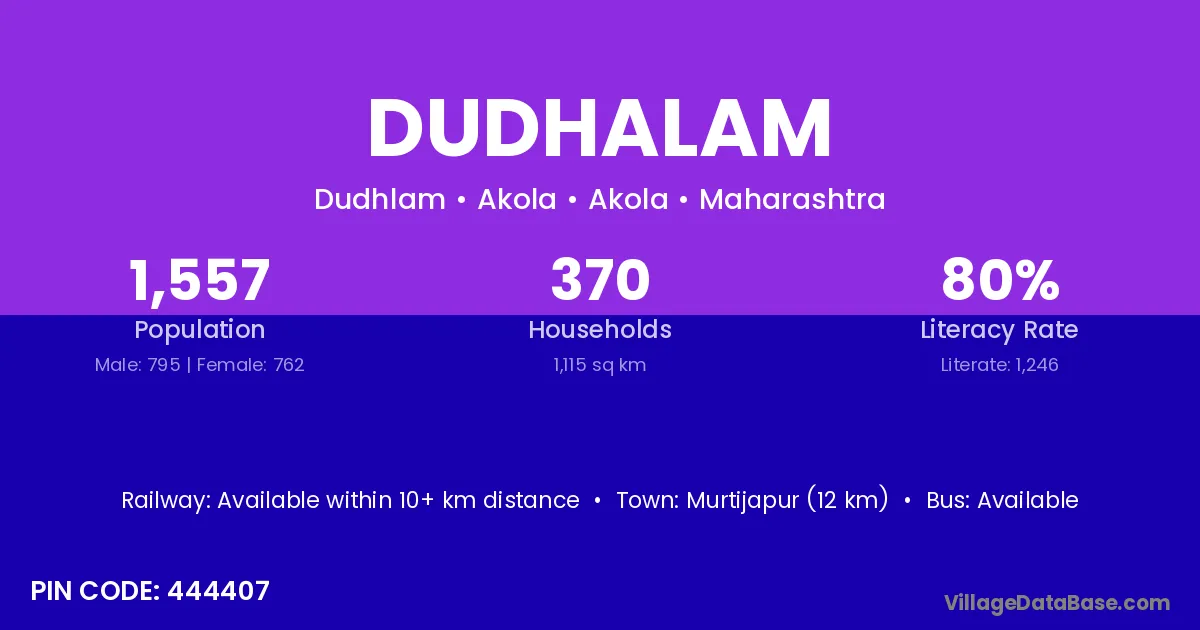 Murtijapur (12 km) is the nearest town to Dudhalam village for major economic activities and is located approximately 12 km away.