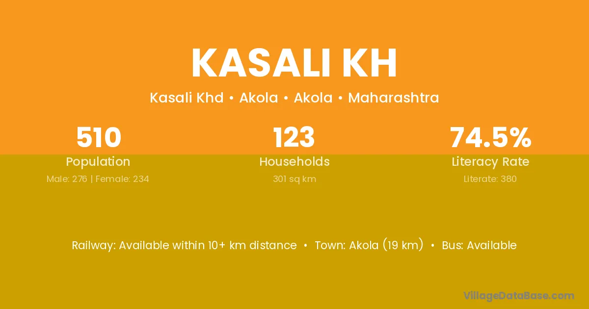 Akola (19 km) is the nearest town to Kasali Kh village for major economic activities and is located approximately 19 km away.