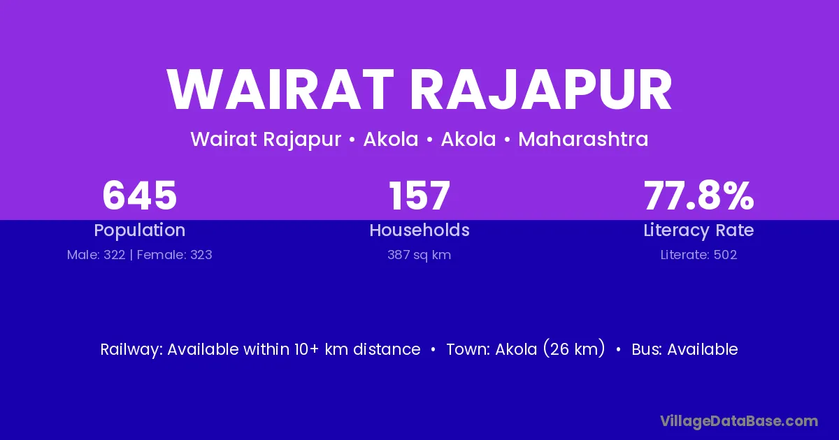 Wairat Rajapur village has a total population of 645 people, of which 322 are males and 323 are females.