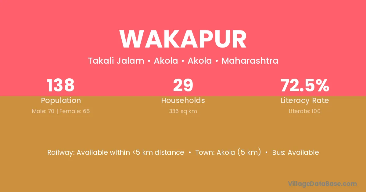 Akola (5 km) is the nearest town to Wakapur village for major economic activities and is located approximately 5 km away.