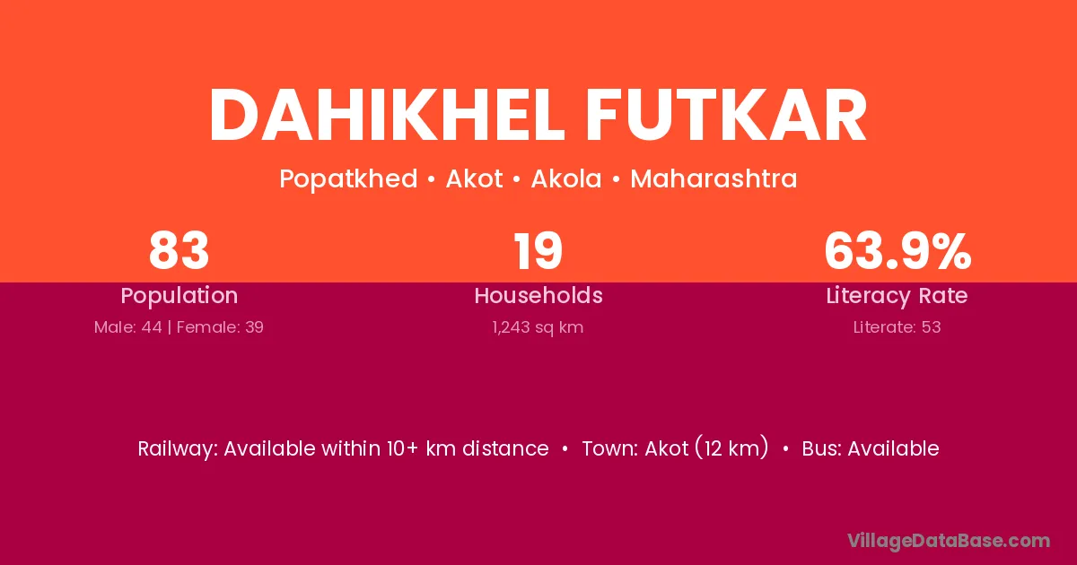 Akot (12 km) is the nearest town to Dahikhel Futkar village for major economic activities and is located approximately 12 km away.