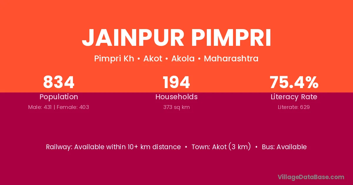 Akot (3 km) is the nearest town to Jainpur Pimpri village for major economic activities and is located approximately 3 km away.