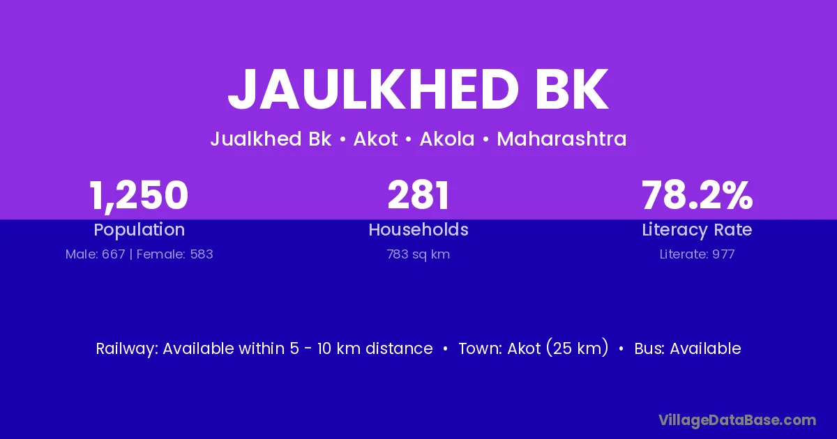 Jaulkhed Bk village has a total population of 1,250 people, of which 667 are males and 583 are females.