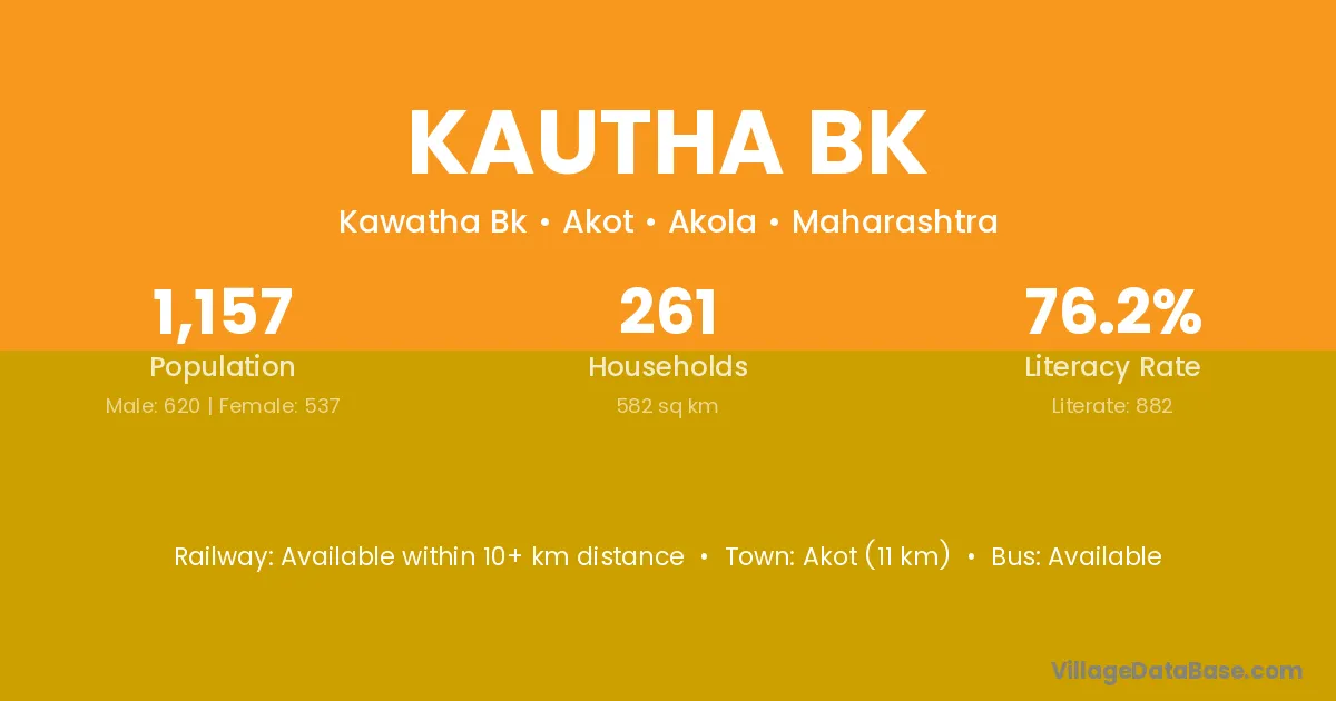 Akot (11 km) is the nearest town to Kautha Bk village for major economic activities and is located approximately 11 km away.
