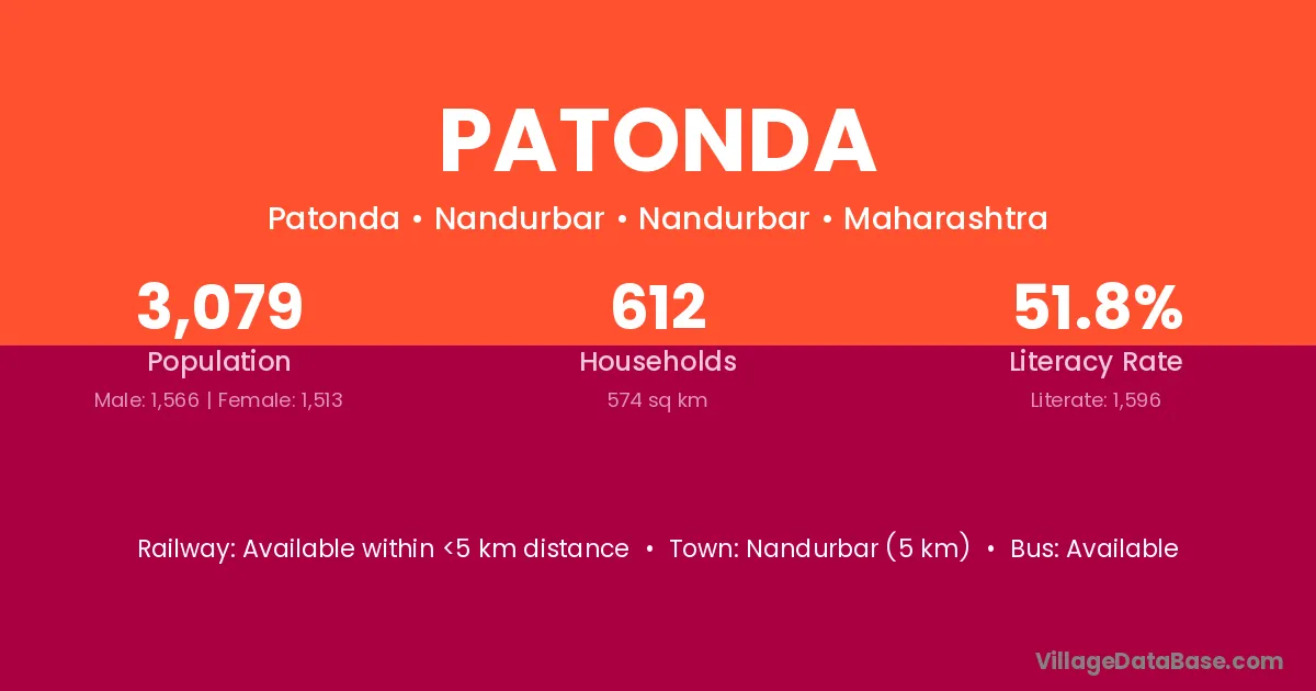 Akot (25 km) is the nearest town to Patonda village for major economic activities and is located approximately 25 km away.