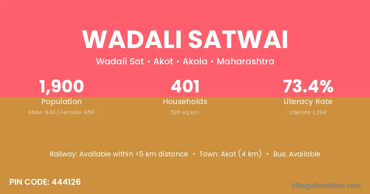Akot (4 km) is the nearest town to Wadali Satwai village for major economic activities and is located approximately 4 km away.