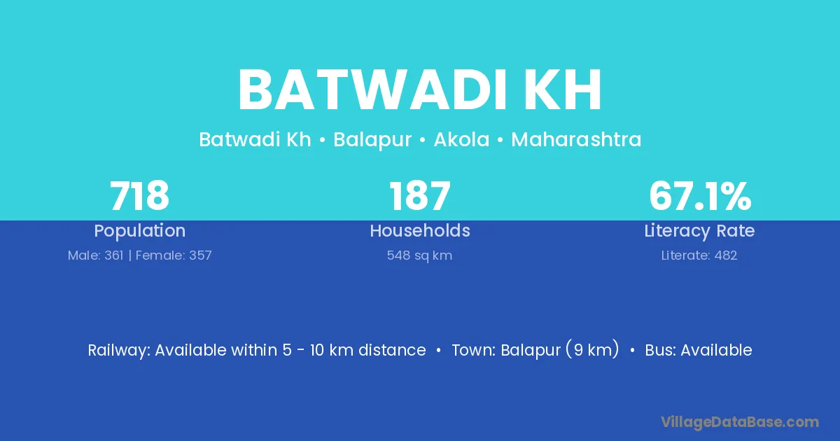 Balapur (9 km) is the nearest town to Batwadi Kh village for major economic activities and is located approximately 9 km away.