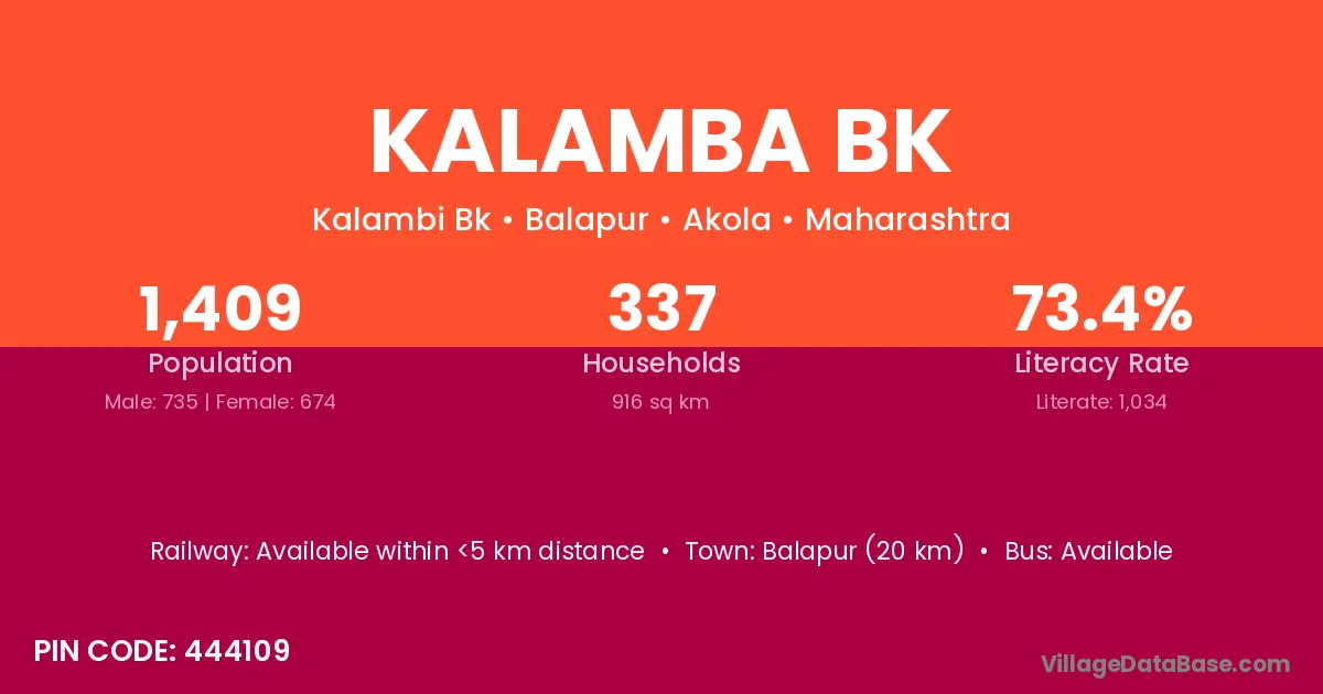 Balapur (20 km) is the nearest town to Kalamba Bk village for major economic activities and is located approximately 20 km away.