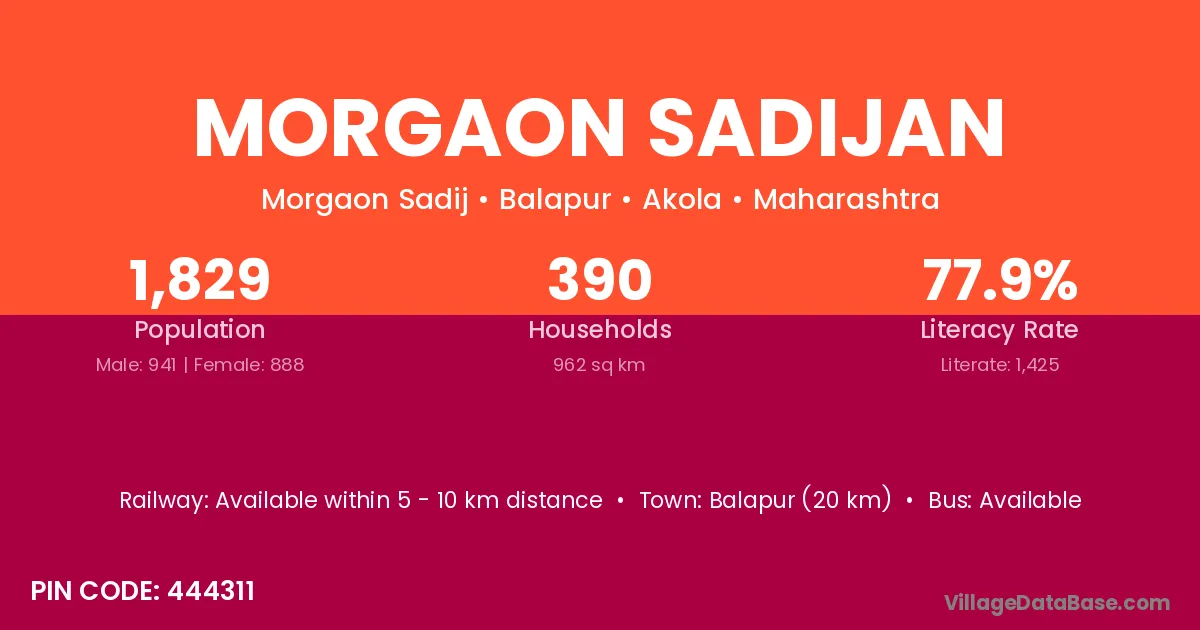 Balapur (20 km) is the nearest town to Morgaon Sadijan village for major economic activities and is located approximately 20 km away.