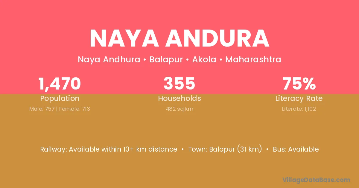 Balapur (31 km) is the nearest town to Naya Andura village for major economic activities and is located approximately 31 km away.