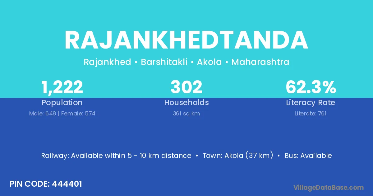 Akola (37 km) is the nearest town to Rajankhedtanda village for major economic activities and is located approximately 37 km away.