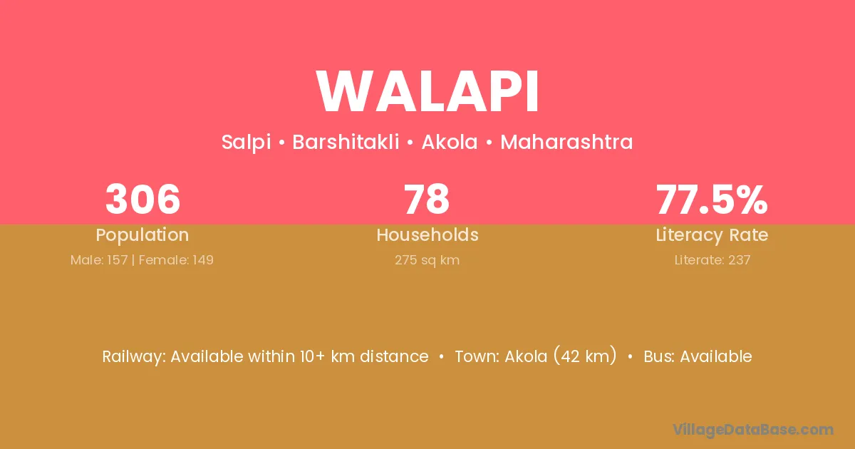 Akola (42 km) is the nearest town to Walapi village for major economic activities and is located approximately 42 km away.
