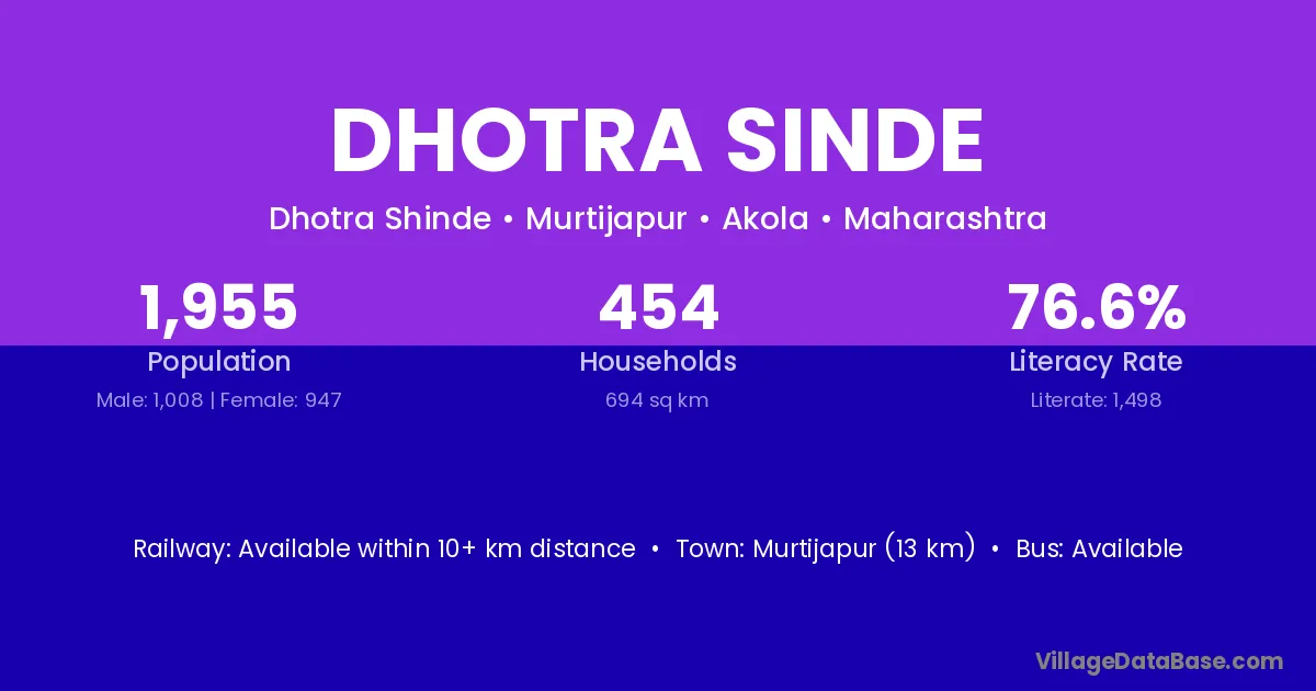 Murtijapur (13 km) is the nearest town to Dhotra Sinde village for major economic activities and is located approximately 13 km away.