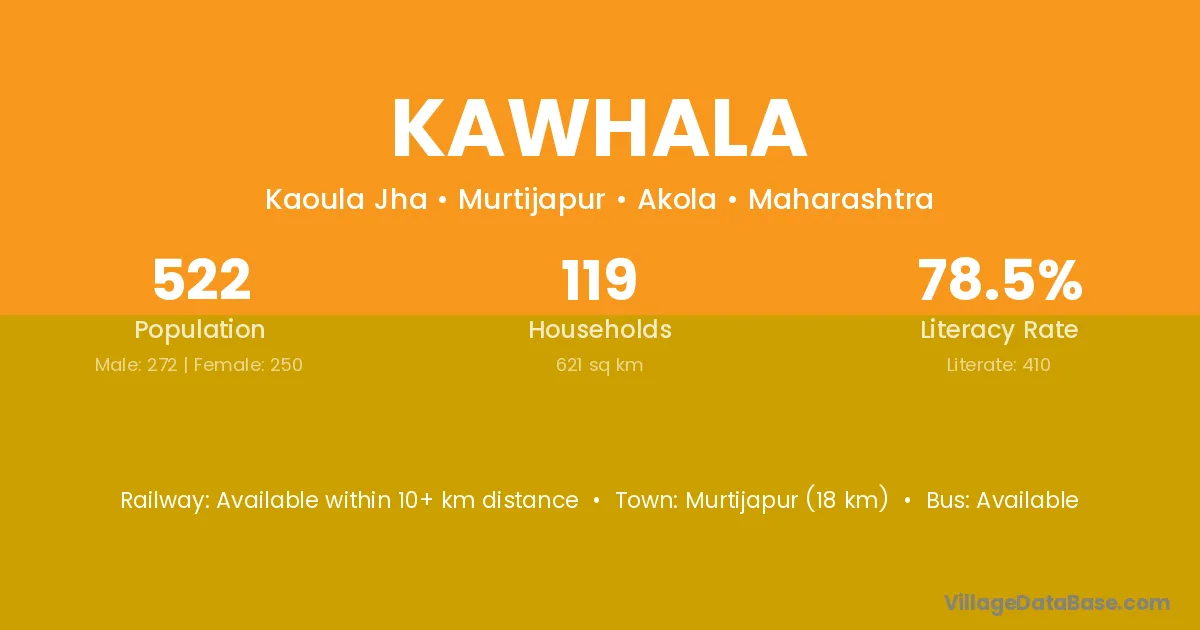 Murtijapur (18 km) is the nearest town to Kawhala village for major economic activities and is located approximately 18 km away.