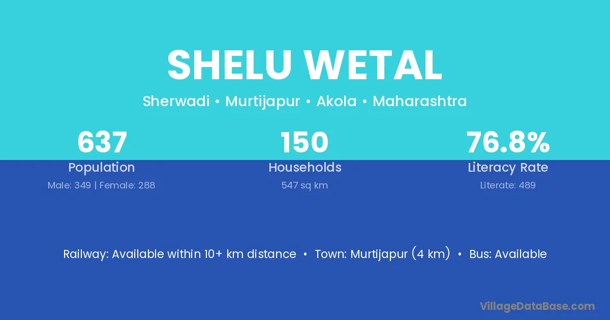 Murtijapur (4 km) is the nearest town to Shelu Wetal village for major economic activities and is located approximately 4 km away.