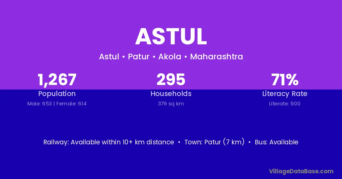 Patur (7 km) is the nearest town to Astul village for major economic activities and is located approximately 7 km away.
