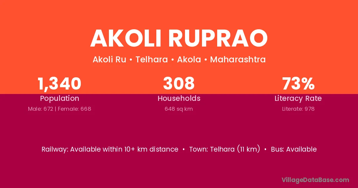 Akoli Ruprao village has a total population of 1,340 people, of which 672 are males and 668 are females.