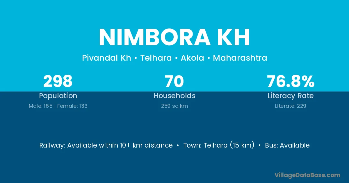 Telhara (15 km) is the nearest town to Nimbora Kh village for major economic activities and is located approximately 15 km away.