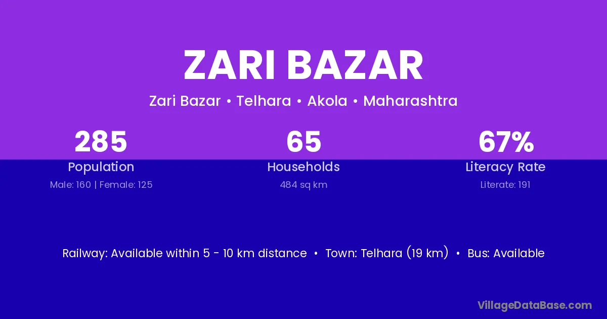 Telhara (19 km) is the nearest town to Zari Bazar village for major economic activities and is located approximately 19 km away.