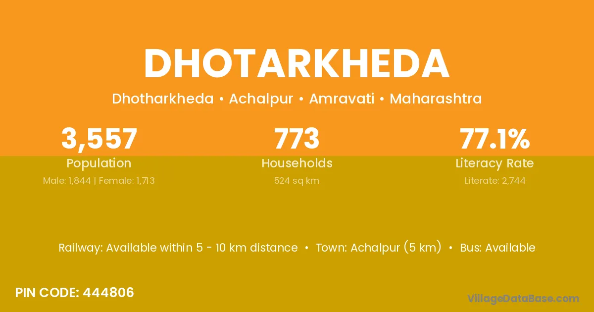 Achalpur (5 km) is the nearest town to Dhotarkheda village for major economic activities and is located approximately 5 km away.