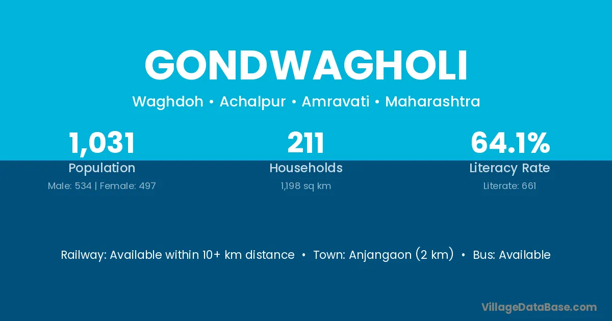 Gondwagholi village has a total population of 1,031 people, of which 534 are males and 497 are females.