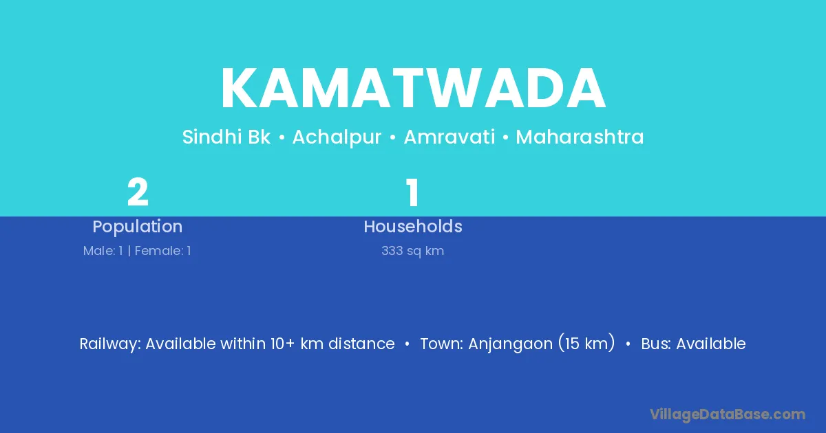 Anjangaon (15 km) is the nearest town to Kamatwada village for major economic activities and is located approximately 15 km away.
