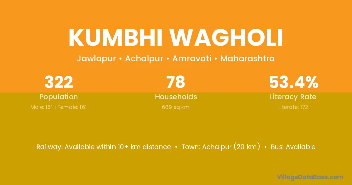 Kumbhi Wagholi village has a total population of 322 people, of which 161 are males and 161 are females.